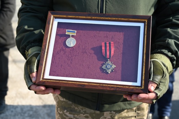 Під звуки залпу та державного гімну України, мамі загиблого вручили пам’ятний лист та державний стяг – як символ держави, якій до останнього подиху служив її син.