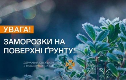 Державна слузба надзвичайних ситуацій України попереджає про заморозки. Вночі 23-24 вересня у західних, північних, 24 вересня і в центральних областях на поверхні ґрунту заморозки...