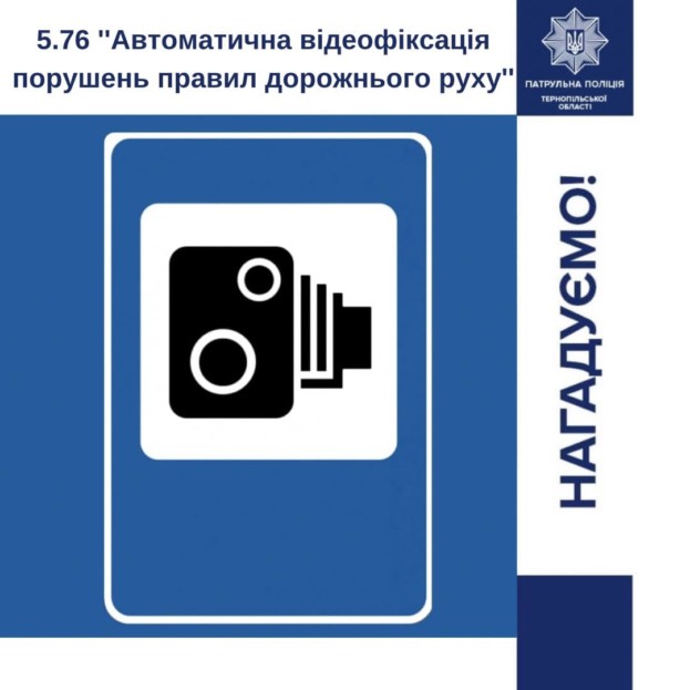 – Дорожній знак 5.76 ”Автоматична відеофіксація порушень правил дорожнього руху” позначає ділянки доріг, де можливе здійснення контролю порушень ПДР за допомогою спеціальних технічних або електронних засобів.