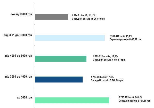Тільки кожен десятий отримує більше 10 тисяч гривень пенсії.