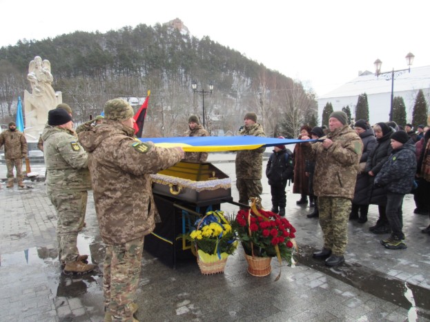 Чин похорону відбувся в Соборі Преображення Господнього, на Майдані Волі віддали військові почесті та попрощалися з захисником України, який спочиватиме на Монастирському кладовищі.