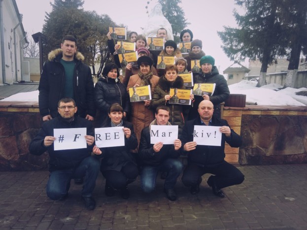 Український етап міжнародної акції «#FreeMarkiv» зібрав понад 300 активістів: бойових побратимів із батальйону ім. Кульчицького, громадських діячів, небайдужих українців. Акція відбувається на підтримку бійця Національної гвардії Віталія Марківа, який утримується у в’язниці в Італії за звинуваченням у загибелі журналіста Андреа Роккеллі в зоні АТО.