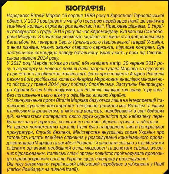– Ми також вимагаємо зміни запобіжного заходу для Марківа на такий, що не пов’язаний з утриманням під вартою. У той же час українська сторона на офіційному рівні готова співпрацювати з італійськими компетентними органами. Ми налаштовані на пошук правди та закликаємо уникати політизації цієї кримінальної справи, як і легковажних та швидких неправильних висновків», – повідомив народний депутат, бойовий побратим Марківа Андрій Антонищак.