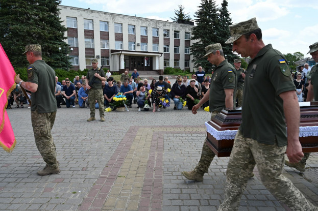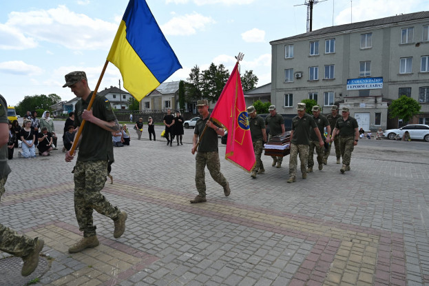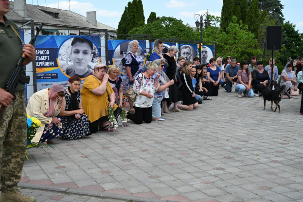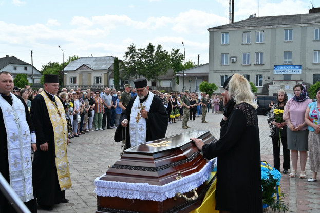 Під звуки сирени та майоріння національного прапора похоронний кортеж прибув на центральну площу м. Ланівці, де сотні мешканців громади прийшли попрощатись із Героєм сучасності.