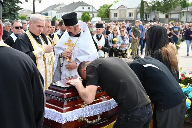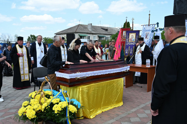 Військовослужбовця провели востаннє на подвір’я рідного дому, а звідти – на місце вічного спочинку. Під звуки військового залпу та державного гімну матері вручили державний прапор, як символ держави, свободу і незалежність якої виборював її син.