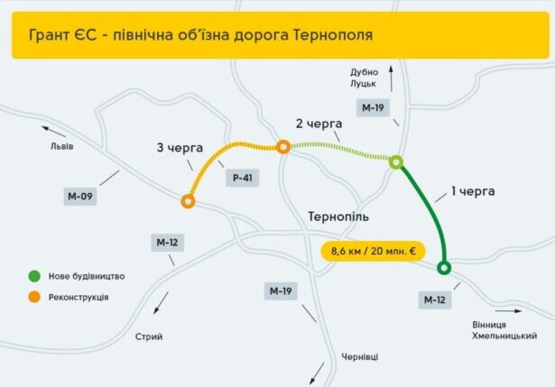 Додамо, що північно-східний обхід Тернополя – автошлях І технічної категорії з 4 смугами руху, будівництво якого дозволить розвантажити вулиці обласного центру від транзитного транспорту та покращити безпеку руху. Він з’єднає населені пункти Шляхтинці та Смиківці і дві міжнародні траси – М-19 та М-12. Фінансує будівництво Європейський інвестиційний банк.