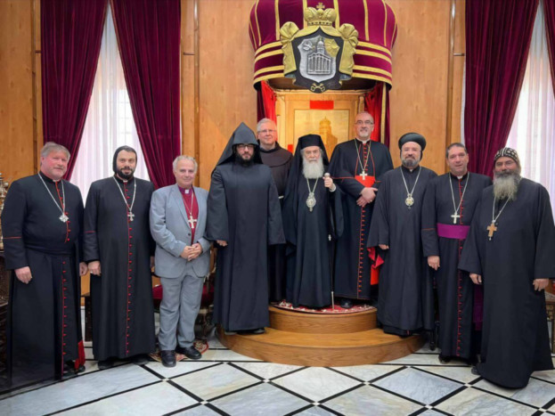 Релігійні лідери Святої Землі під час зустрічі у малій тронній залі Єруслимської патріархії, 2023