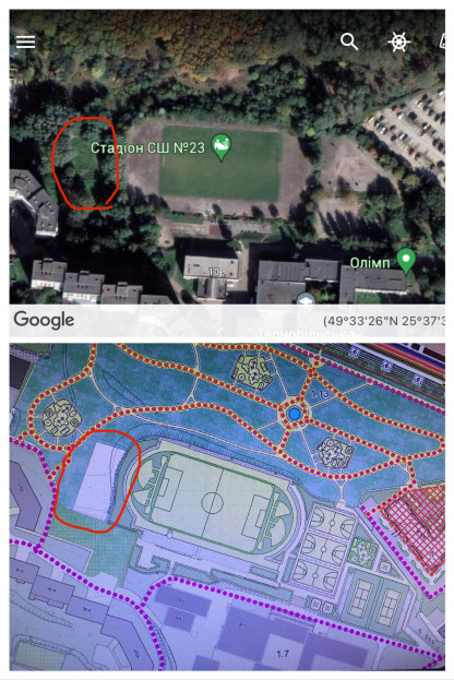 Ще цікаво, що невелику ділянку біля стадіону 23-ї школи віднесли до зони Ж-5 (зона існуючої багатоквартирної житлової забудови від 10 до 16 поверхів) хоча там зараз згідно супутникових знімків рясна зелена зона. Я розумію, що ТМР не хоче турбувати нас такими нецікавими новинами, але думаю, це мають вирішувати самі тернополяни. А як сприймати цю ситуацію вирішувати вам, – розмірковує Андрій Будзінський.