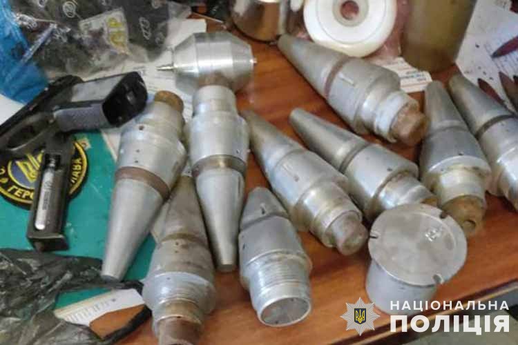 За місцем проживання та в гаражному приміщенні було вилучено 9 гранат, 27 підривачів різного типу до реактивних систем залпового вогню, більше сотні набоїв різного калібру, порох, автомат Калашникова, магазин до нього та майже 40 набоїв, 20 предметів, схожих на дистанційні труби до артилерійських систем.