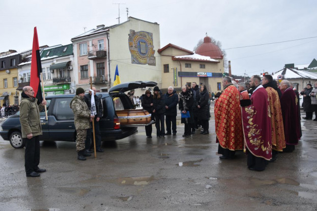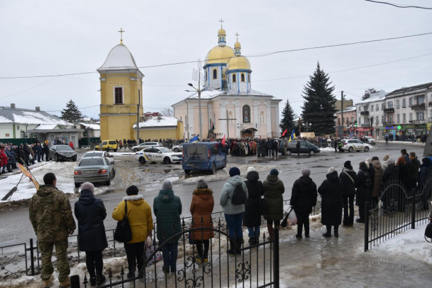 На перехресті біля греко-католицької церкви священнослужителі та небайдужі мешканці громади помолилися за упокій душі полеглого військовослужбовця.