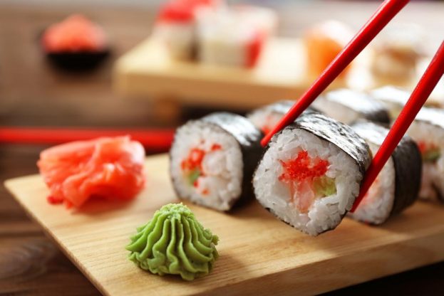 - Сашимі. Це популярний варіант суші, який подають в Японії. Тонко нарізані скибочки з філе сирої риби, які подають з соєвим соусом та васабі.