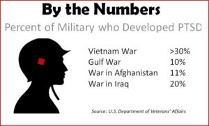 Встановлено, що від 20% до 40% військовослужбовців потребують психологічної допомоги, констатує Центр громадського здоров’я МОЗ України. Симптоми гострої травми виявляють у 60-80% військовослужбовців, які були очевидцями загибелі товаришів чи мирного населення або бачили тіла померлих. Ризик появи симптомів порушення психіки стосується більш молодих військовослужбовців, віком 18-24 років, у яких виявлено симптоми депресії або у яких були проблеми з алкоголем. Симптоми ПТСР розвиваються приблизно у 12-20% військовослужбовців, які перенесли бойову травму, але не звернулися за психологічною допомогою через побоювання зневаги за прояви слабкості, боягузтва, загрозу військовій кар’єрі.