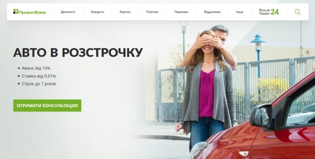 ПриватБанк пропонує до послуг клієнтів програму “Авто в розстрочку”, завдяки якій користуватися автомобілем можна вже сьогодні, при цьому виплачуючи вартість автомобіля частинами (щомісячний платіж). Угода оформляється у формі фінансового лізингу. ПриватБанк пропонує клієнтам спеціальні умови на весь модельний ряд автомобільних брендів Toyota, Nissan, Peugeot, Citroen, Renault, Mitsubishi и Lexus від 0,01% річних.