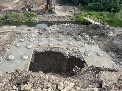 Після перенесення водогону багатотонний буронабивний кран почав робити свердловини під останню, третю опору мосту у Теребовлі. У пробурені свердловини мостобудівники заливають бетонну суміш, щоб надалі встановити арматурний каркас майбутніх паль.