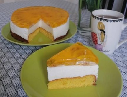 Після випікання бісквіту даємо охолонути. Виливаємо сирну масу, ставимо в морозилку на 30-60 хв. За цей час готуємо желе, чекаємо, поки охолоне, і тоді викладаємо фрукти та за допомогою кісточки змащуємо їх желе. Ставимо в холодильник. Коли шар фруктів із желе застигне, додаємо іншу частину желе і даємо витвору повністю остигнути. Все просто, а все просте – геніальне!