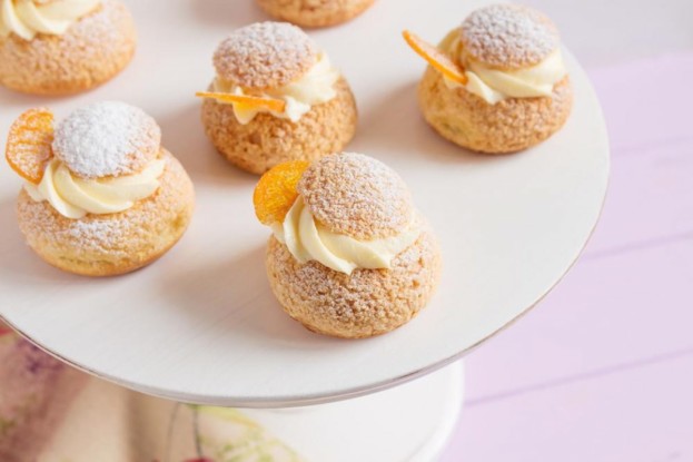 Для заварного тіста: борошно – 190 г, цукор – 1.5 ч. л. вершкове масло – 115 г, молоко – 100 г, вода – 250 мл, яйця – 5 шт., дрібка солі.