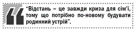 Відстань – це завжди криза для сім’ї, тому що потрібно по-новому будувати родинний устрій. По-новому бачити свою роль, реагувати на нову роль свого партнера. Коли почалася хвиля виїзду за кордон, в основному виїжджали жінки. Вони міняли свою роль залежної домогосподарки на годувальника родини. Чоловікові потрібно було підлаштуватися під новий формат, і це ненормальна ситуація, бо його самооцінка падає. Жінка, яка відчуває, що на неї покладено відповідальність за родину, стає більш жорсткішою. Через великий тягар обов’язків вона не здатна дати дітям тієї ласки, любові, ніжності, яких вони потребують.