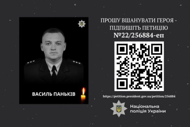 Просимо підтримати петицію щодо вшанування пам’яті старшого лейтенанта поліції Василя Паньківа, життя якого обірвалося 23 квітня 2025 року під час виконання бойового завдання на Донеччині.