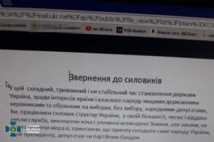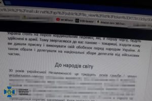 СБУ виявила в організатора готові маніфести до армії, силовиків та цивільного населення України із закликами переходити на їхню сторону. Крім того, знайдено звернення до іноземних держав про вимогу визнання нового «анклаву».