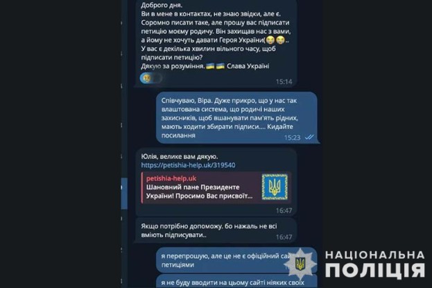 Увага, аферисти використовують довіру людей, аби наживатися на їхніх емоціях та добрих намірах. Останнім часом з’явилися шахрайські схеми, коли зловмисники створюють фейкові акаунти, які, начебто належать родичам загиблих Героїв або організаціям, і просять підписати петиції про присвоєння звання посмертно або про допомогу.
