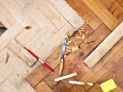 Після ремонту паркету потрібно зашпаклювати отвори, відшліфувати, покрити лаком.