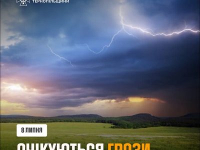 Завтра, 8 липня, на Тернопільщині очікується мінлива хмарність, вночі без опадів. Як повідмовляє Тернопільський обласний центр з гідрометеорології, вдень місцями невеликі короткочасні дощі, грози. Вітер південно-східний, 7 – 12 м/с. Температура по області вночі 16 – 21° тепла, вдень 27 – 32° тепла; по м. Тернополю вночі 17 – 19° тепла, вдень 30 – 32° тепла.