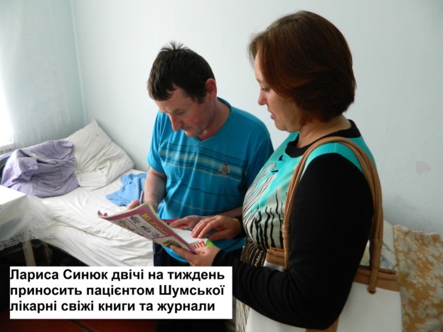 Виписавшись із лікарні, пані Лариса про своє ноу-хау розповіла керівництву книгозбірні. Отримавши від нього «добро», узгодила цю ідею з головним лікарем Шумської районної лікарні Юрієм Кушніром.