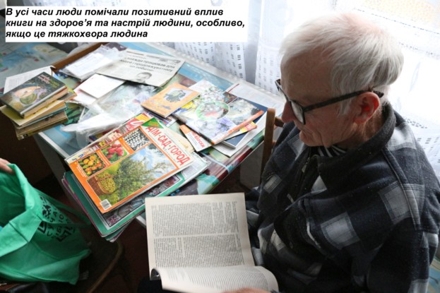 – В усі часи люди помічали позитивний вплив книги на їхнє здоров’я та настрій, , особливо, якщо це тяжкохвора людина. Наші візити до лікарні неодмінно супроводжуються не лише видачею чи обміном книг, а й бесідами-рекомендаціями, міні-диспутами з приводу прочитаного. Специфіка обслуговування цієї категорії читачів полягає у тому, що хворі, самотні люди відчувають дефіцит уваги та спілкування. Тому найбільш популярною формою роботи стала індивідуальна бесіда. Читачі не лише прагнуть отримати необхідну літературу чи журнал, а й відчути розуміння, щиру зацікавленість, підтримку, – додає пані Лариса.