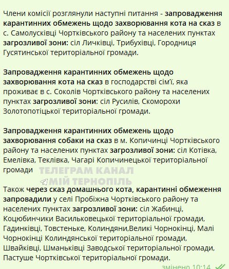 На Тернопiльщинi у 23 селах Чорткiвського району запроваджують карантин через сказ у домашнiх тварин.