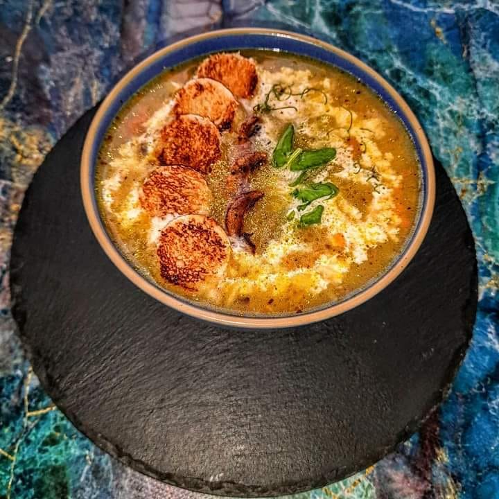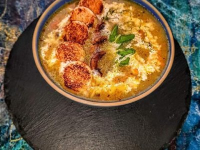 Через 3-5 хвилин її можна перекласти в каструлю, де вариться картопля. На цьому етапі дуже важливо все старанно перемішати, інакше суп буде з грудочками.