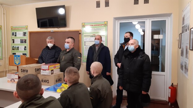 На цей раз делегація Громадської ради у складі її голови Валерія Федорейка і його заступників Івана Іскерського та Володимира Вороніна спільно з начальником управління внутрішньої політики, релігій і національностей Тернопільської ОДА Ігорем Кульчицьким привезли солдатам різноманітні солодощі-смаколики та подарували історично-патріотичні календарі.