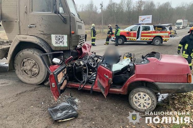 Аварія трапилася на дорозі Тернопіль-Ланівці, неподалік села Нижчі Луб’янки. За попередньою інформацією, водій вантажного автомобіля КамАЗ виїхав на смугу зустрічного руху і допустив зіткнення з ВАЗ-21099. Пасажирка легкового авто 1958 року народження від отриманих травм загинула. Водія та ще одну людину госпіталізували до лікарні.