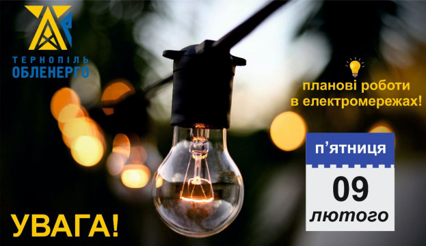 У деяких населених пунктах Тернопільщини сьогодні, 9 лютого, плануються роботи для поліпшення забезпечення електроенергією.