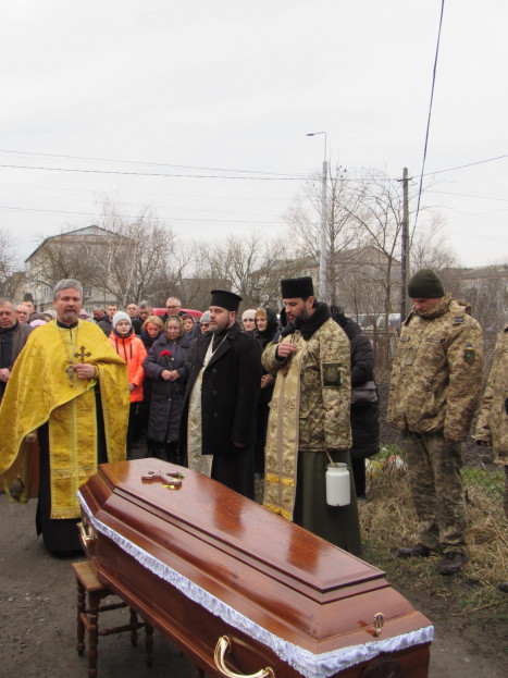 Краяни зустріли бійця на колінах живим коридором. Сотні мешканців району, представники органів місцевої виконавчої влади та місцевого самоврядування, громадськості, командування та військовослужбовці спільно із духовенством помолилися за упокій його душі.