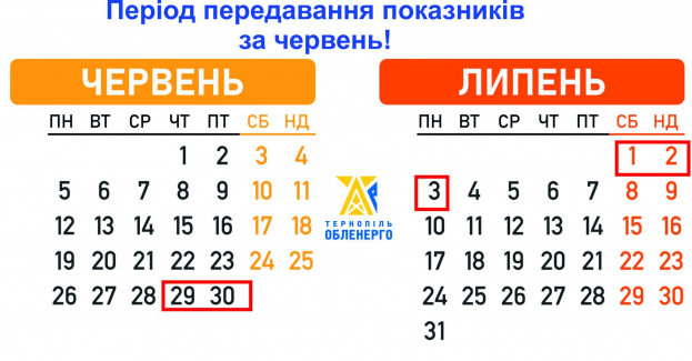 Період передавання показників електролічильника визначений Кодексом комерційного обліку електричної енергії, тож показник за червень 2023 року споживачам треба подавати в період, що розпочинається з 29 червня по 03 липня 2023 р. включно.