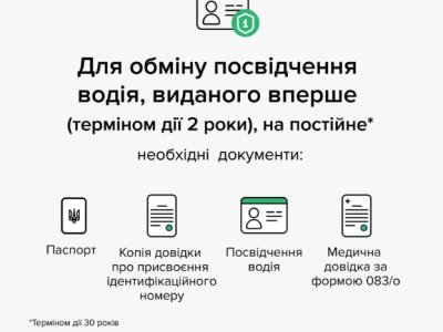 Важливо зазначити, що відповідно до пункту 251 постанови КМУ від 8 травня 1993 року №340, обмін посвідчення водія, виданого особі вперше, проводиться без складання іспитів за умови вчинення особою протягом двох років з дня видачі такого посвідчення не більше двох адміністративних правопорушень у сфері забезпечення безпеки дорожнього руху та невчинення нею кримінального правопорушення, передбаченого статтею 286 Кримінального кодексу України.