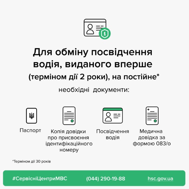 Обмін такого посвідчення можна здійснити в будь-якому сервісному центрі МВС, надавши адміністратору наступний пакет документів: паспорт; копія довідки про присвоєння реєстраційного номера облікової картки платника податків; медична довідка щодо придатності до керування транспортним засобом (форма 083/о); наявне посвідчення водія.