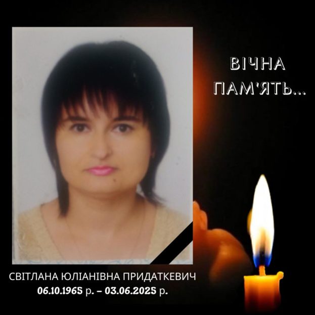 На 60 році, після важкої хвороби, обірвалося життя сестри медичної ортопедо-травматологічного дитячого відділення з травматологічним пунктом КНП «Тернопільська обласна дитяча клінічна лікарня» Світлани Юліанівни Придаткевич (06.10.1965 – 03.06.2025 р.). Про сумну новину повідомили у медустанові.