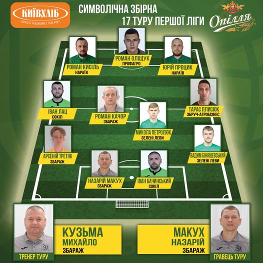 Вітаємо Михайла Михайловича Кузьму і Назарія Макуха з заслуженим відзнаками у 17-му турі. Також хочеться подякувати всьому збаразькому колективу за неймовірний сезон, у якому команда стала чемпіоном, не програвши жодного(!) поєдинку.