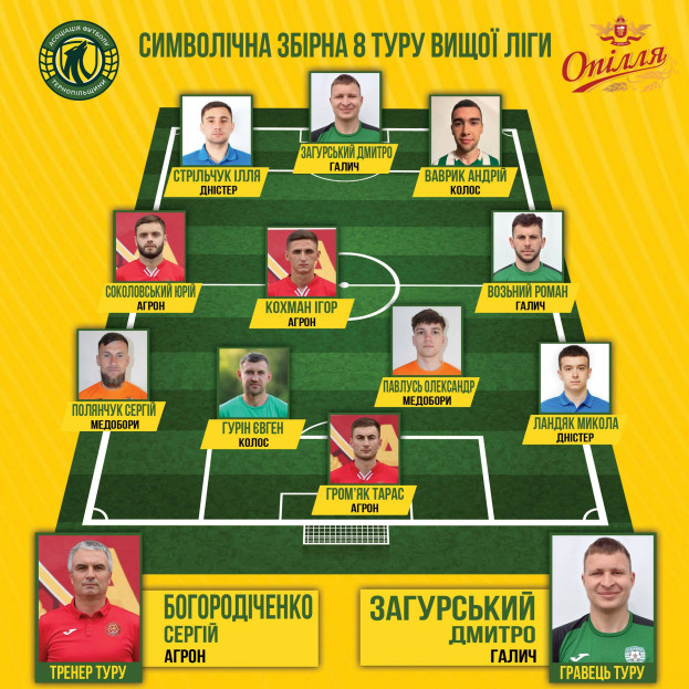 23 червня відбувся восьмий тур вищої ліги чемпіонату Тернопільської області з футболу 2024 року. Підсумовуючи його, Асоціація футболу Тернопільщини традиційно оприлюднює символічну збірну туру, визначає кращого гравця та тренера.