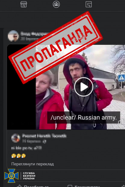 Агітатор поширював у соціальних мережах зрежисоване російськими пропагандистами відео, на якому нібито евакуйовані росіянами жителі Маріуполя звинувачують українських захисників у обстрілах мирного населення та дякують окупантам за їхнє «звільнення» з охопленого вуличними боями міста.