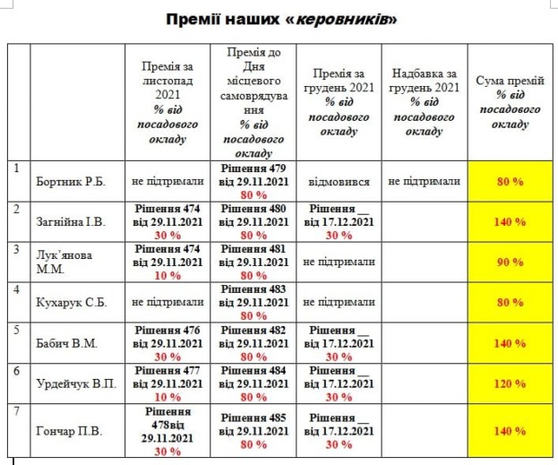 Депутат Бережанської міської ради Степан Жеребецький оприлюднив розмір премій мера Бережан Ростислава Бортника та його заступників. Виявилися цікаві цифри, з якими Ви можете познайомитися та проаналізувати.