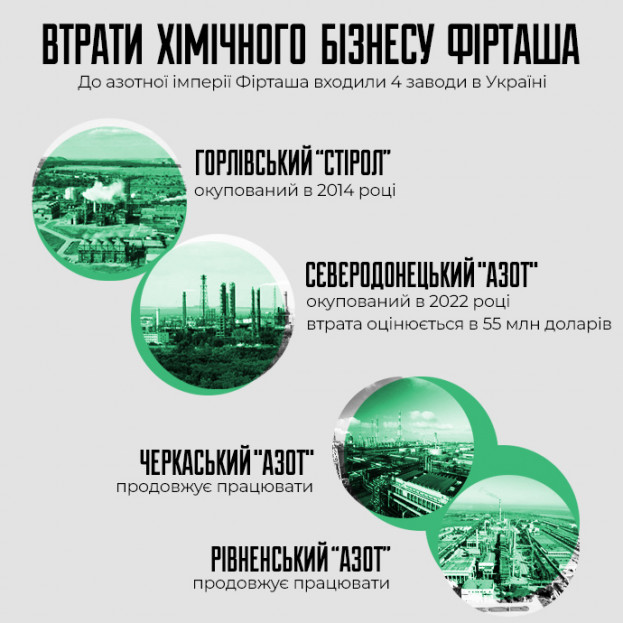 У 2022 році азотні підприємства «Рівнеазот» та Черкаський «Азот», що входять до OSTCHEM (азотний холдинг Group DF опального олігарха з Тернопільщини Дмитра Фіратша), виготовили 1,754 млн тонн азотної продукції. Черкаський «Азот» виготовив більшу частину всього обсягу – 1,117 млн тонн, «Рівнеазот» – 0,592 млн тонн.