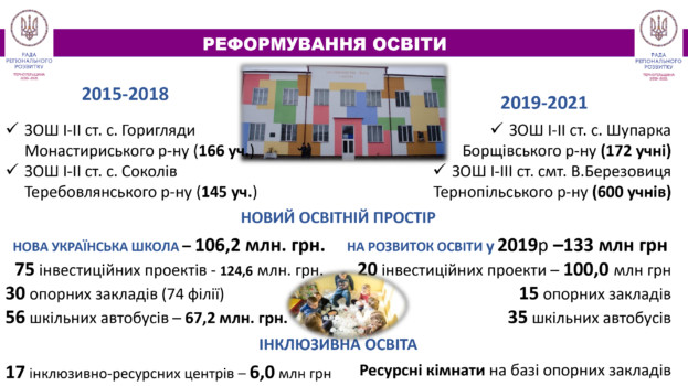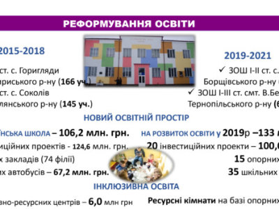 За його словами, у краї добудували дві школи – у селі Горигляди Монастириського району та селі Соколів Теребовлянського району.
