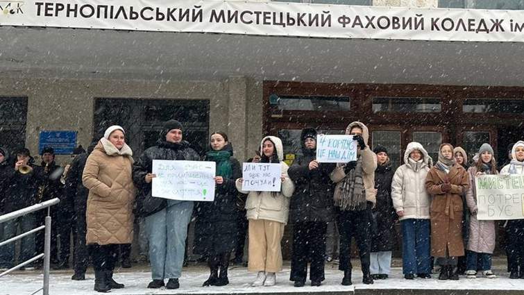 Студенти Тернопільського мистецького коледжу імені Соломії Крушельницької 22 листопада вийшли на пікет під будівлю навчального закладу на бульварі Тараса Шевченка, 17. Коледж орендує цю будівлю в Тернопільської облради вже два роки, проте в листопаді депутати почали підготовку рішення про передачу її в оренду спілкам та організаціям ветеранів і учасників бойових дій. Студенти коледжу під час пікету грали на музичних інструментах, тримали плакати, скандували, що для навчання їм необхідне це приміщення, та просили обласну раду не змінювати орендаря.