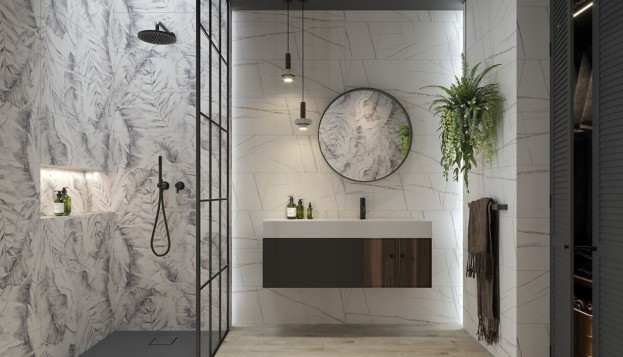 Надійний керамограніт підходить для зон із високим навантаженням і чудово виконує функцію підлогового покриття. Керамічна плитка та декоративні елементи застосовуються як для підлоги, так і для оздоблення стін, даючи можливість гнучко працювати з простором.