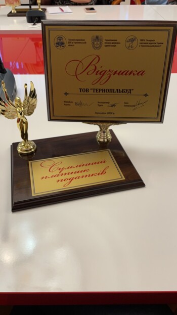 28 грудня у стінах Тернопільської державної адміністрації товариство «Тернопільбуд» було відзначено нагородою «Сумлінний платник податків».
