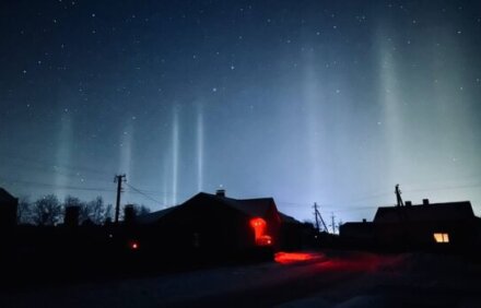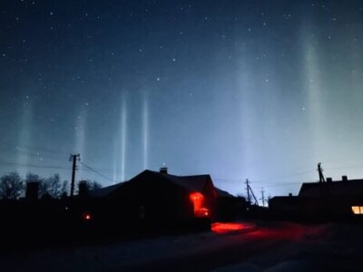 Жителі Бережан, що на Тернопільщині, вночі 9 лютого спостерігали рідкісне природне явище під назвою “світлові стовпи”. Воно утворюється, коли в атмосфері знижується температура.