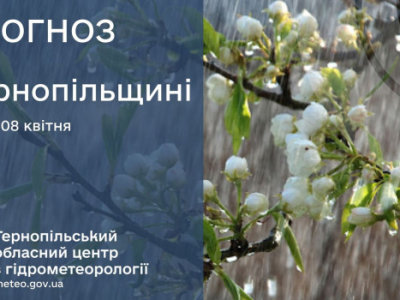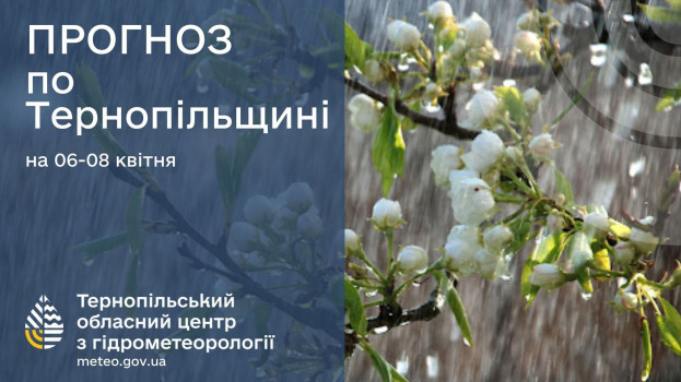 6 квітня: Хмарно з проясненнями. Вночі без істотних опадів. Вдень короткочасні дощі. Вітер вночі південно – західний, 7 – 12 м/с; вдень північно – західний, 7 – 12 м/с, пориви 15 – 20 м/с. Температура по області вночі 5 – 10° тепла, вдень 14 – 19° тепла; по м. Тернополю вночі 6 – 8° тепла, вдень 16 – 18° тепла.