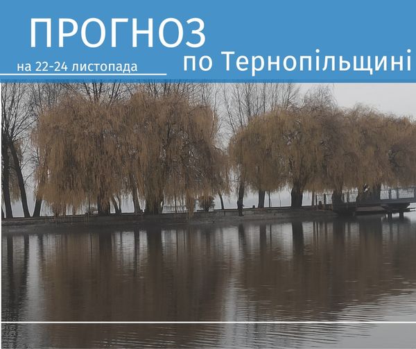 24 листопада: Хмарно. Невеликі опади. Вночі та вранці на дорогах ожеледиця. Вітер західний, 7 – 12 м/с, пориви 15 – 20 м/с. Температура впродовж доби 1 – 6° тепла.